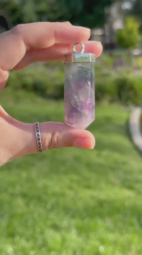 - Colgante de Fluorita Arcoíris con plata 950.